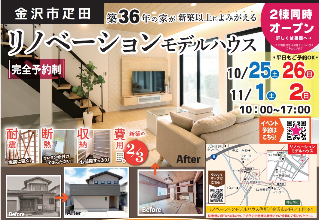 【10月25日~11月2日】金沢市疋田リノベーション モデルハウス見学会🎉